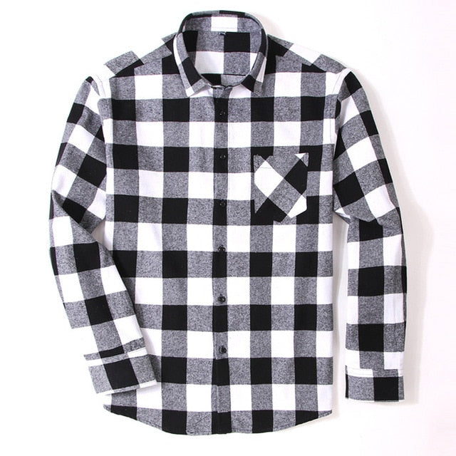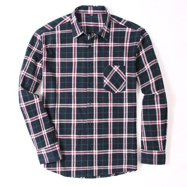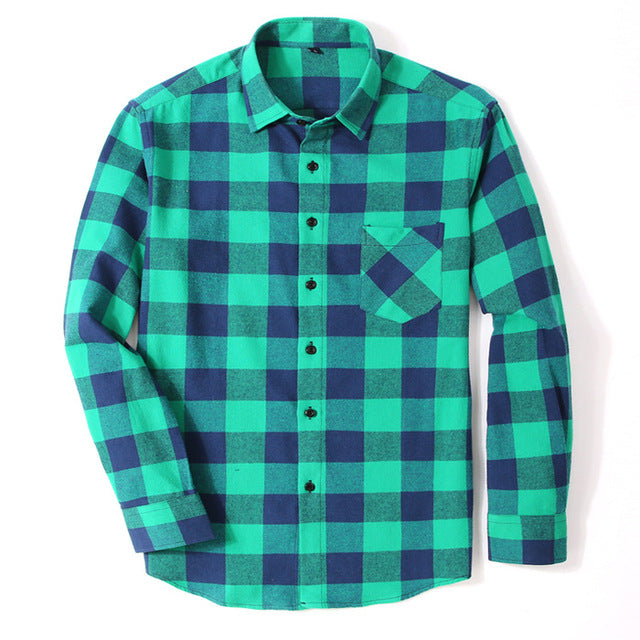 100% Cotton Flannel Men's Plaid Shirt Slim Fit Spring Autumn Male Brand